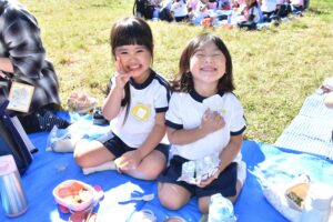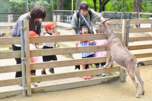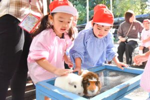 秋の遠足に大型バスに乗って「智光山公園」へ行きました。こども動物園でモルモットとのふれあいをしたり、ヤギやペンギンなど色々な動物を見たりしました。自然の中で、季節を感じながら遠足を楽しみました。